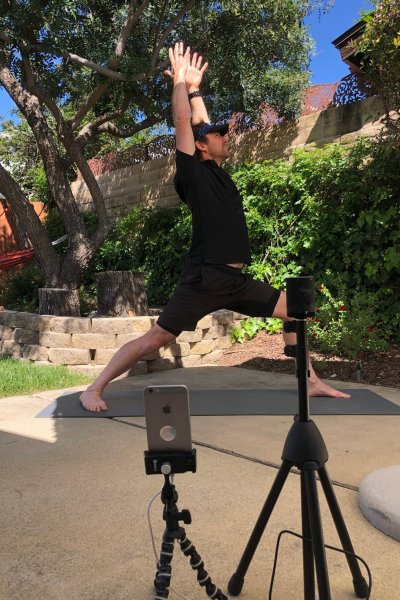 Tilita Lutterloh (@iamtilita), 39, coaches a handful of students through group workouts from her living room in Leimert Park in Los Angeles. Lutterloh was hoping to qualify for the Olympics in the triple jump and makes her living as a fitness coach and nutritionist. With the Olympics postponed, she offers classes three times a week, attended by a half-dozen students. A triathlete, ultradistance runner and longtime yoga instructor, Ted McDonald (@teddymcdonald), 49, teaches dozens of yoga students on Instagram and Facebook Live.